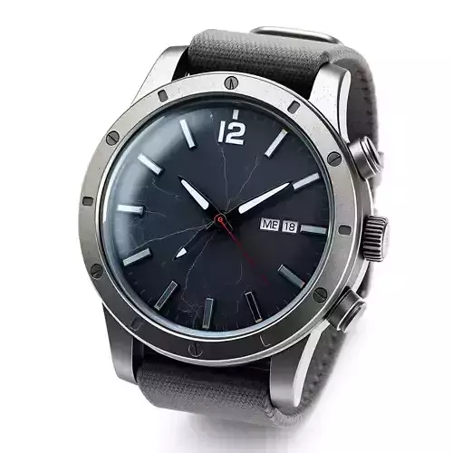 Presenting a meticulously crafted 3D model of a rugged, military-style wristwatch, designed to bring authenticity and detail to your projects. This model features a robust metal casing with a brushed finish, a textured canvas strap, and a highly detailed watch face complete with a day/date display, prominent hour markers, and a distinctive cracked glass effect. The intricate details, including the crown, pushers, and exposed screws, are faithfully replicated. This asset is ideal for a wide range of applications, from enhancing character designs in game development to adding realism in architectural visualizations and product showcases. It's also perfect for use in augmented reality (AR) experiences, digital art compositions, and even high-fidelity fashion renderings. The model boasts clean topology, efficient UV unwrapping, and is accompanied by high-resolution PBR textures to ensure stunning visual quality across various lighting conditions. It is optimized for both static renderings, allowing for breathtaking close-up shots, and can be adapted for real-time applications with appropriate LODs. Supported file formats likely include GLB, OBJ, STL, ABC, DAE, FBX, and USD, ensuring broad compatibility across major 3D software and engines, making it a versatile addition to any asset library.