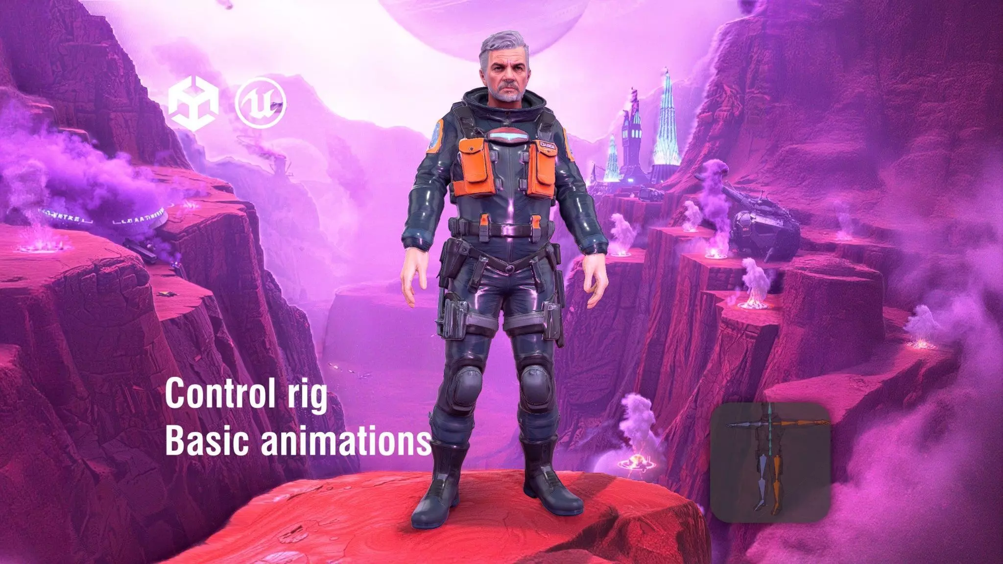 Includes multiple idle, walk, run, and jump animations as FBX files for Unity and Unreal Engine, easy to apply to this character. It's full compatible with Mixamo RIG.This character model comes in 3 levels of detail: low-poly for mobile games, mid-poly for standard games, and high-poly for cinematics. The model is fully rigged and ready for animation. It includes PBR textures (4096x4096), including diffuse, normal maps, and metallic/roughness maps. The character is provided in T-pose and can be easily imported into any modern game engine or 3D software. Perfect for games, animations, or virtual reality applications. Please like and comment if you find this model useful!A rugged 42-year-old male space explorer with a muscular build, close-cropped graying hair, weathered face showing determined grit, wears a scarred navy blue pressure suit of reinforced kevlar with glowing orange life-support panels and utility belts, plus a holographic visor pendant. He stands on a crimson alien world's jagged cliff amid swirling purple dust storms, bioluminescent crystal spires, hovering scanner drones, geothermal vents spewing steam, and a massive ringed gas giant looming under flickering aurora lights.. White background. Realistic colorized model. In the middle. Full body view. T POSE with arms spread to the sides, straight arms, front view. Professional lighting. Soft shadows. Include the described environment and all visual details for a complete scene.