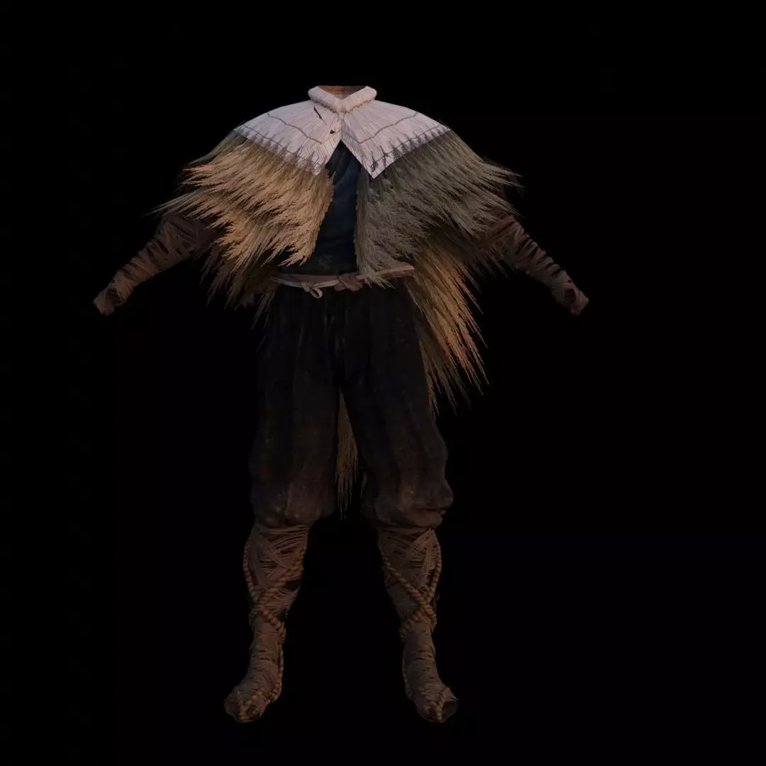 *Features:*Game-Ready Outfit – optimized for use in games like Sekiro, Dark Souls, Elden Ring–style projects.Rigged Model – ready to attach to male character rigs.UV Mapping Included – clean and editable UVs for easy retexturing.High-Quality Textures – PNG format for realistic cloth and leather details.Stylized Design – inspired by Japanese samurai/ninja clothing.