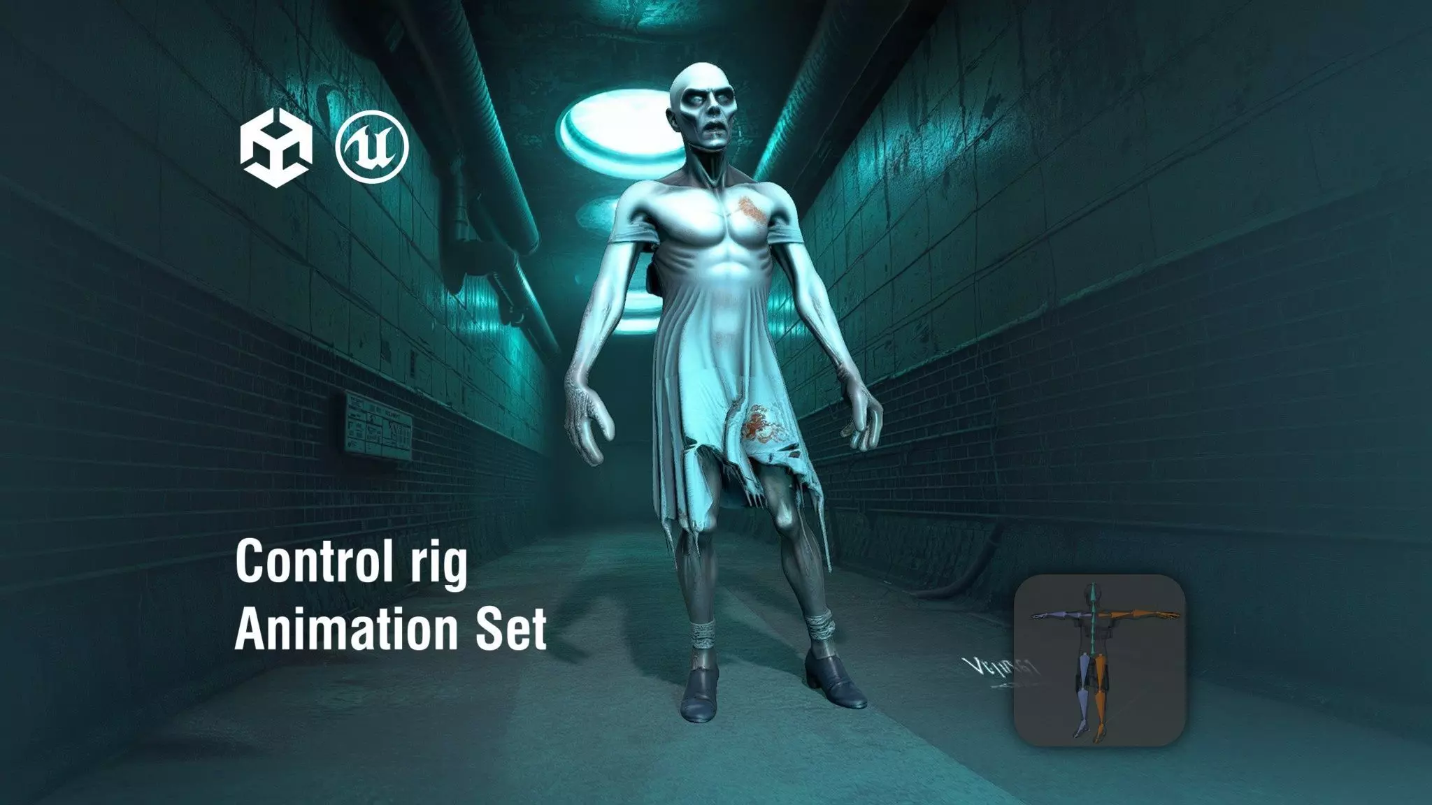 This model depicts a sewer zombie characterized by slick darkened skin and algae stains, wearing tattered hospital gown remnants. Each model has 3 levels of detail with QUAD polygons: