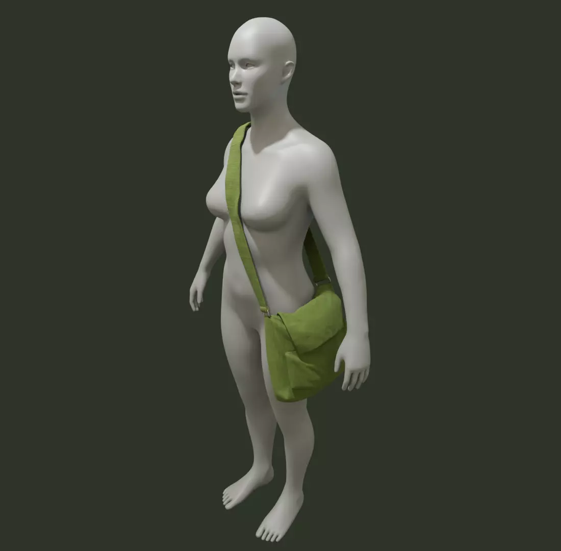 Messenger bag with a female model wearing it. The bag comes in two colours. Green and Red. Available in five formats:FBX.zip