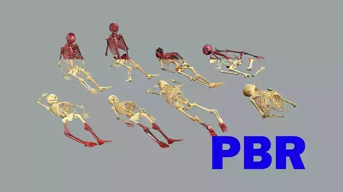 Skeleton Burning Lava Pack Game Ready Low-poly 3D Model In this set you will find a highly detailed AAA modular destructible human skeleton that comes with a variety of Smart material effects. It can be rendered in its pure, bloody, burnt, and fiery states, which adds more realism to your designs. You also have the option to choose from a huge variety of skull and skeleton shapes from different ethnic groups, which can be easily modified procedurally.