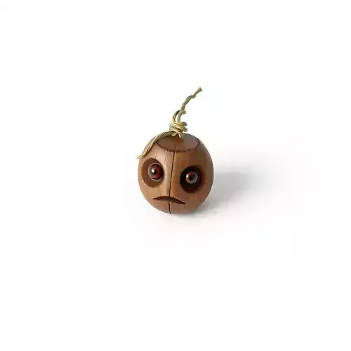 This charming 3D model presents a stylized, anthropomorphic wooden bomb or character head, infused with a distinct sense of melancholy. The spherical design features a meticulously carved wooden texture, showcasing visible grain and natural imperfections that add to its rustic appeal. Its most striking features are the large, expressive, deep-set eyes and a downturned mouth, conveying a poignant sadness that makes it instantly relatable and unique. A detailed rope element is expertly tied at the top, serving as both a stylistic 'fuse' and a potential hanger, enhancing its character. This versatile asset is ideal for various creative projects, including whimsical game development, where it could function as an interactive object, a collectible, or even a unique enemy. It's also perfect for use in animated shorts, digital art compositions, or as a distinctive prop in augmented reality (AR) applications. The model boasts clean topology and is meticulously UV unwrapped, ensuring ease of texture application and optimal performance. Rendered with high-quality PBR textures, it offers realistic material representation, making it suitable for both real-time game engines and high-fidelity static renderings. Furthermore, its solid, self-contained design makes it an excellent candidate for 3D printing, allowing for the creation of a tangible, charming desk ornament or collectible. Supported file formats include GLB, OBJ, FBX, STL, DAE, USD, and PLY, ensuring broad compatibility across major 3D software and platforms.