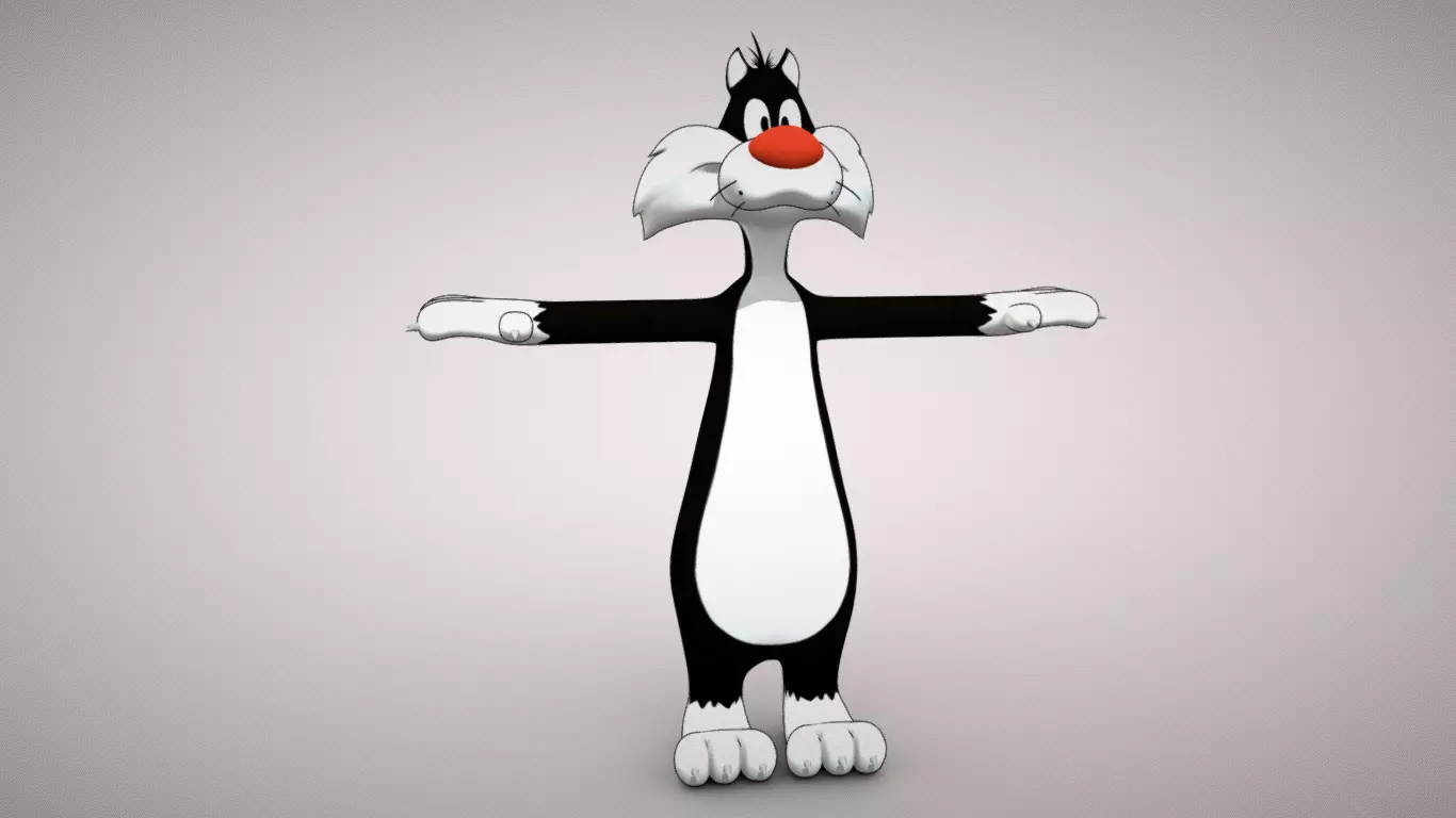This is a high-poly 3D model of Sylvester the Cat, created with clean topology, suitable for character workflows.
