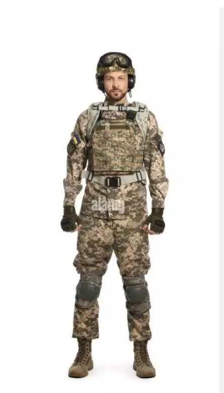 A 3d model of a Ukrainian soldier in tactical googles and Ukrainian soldier uniform
