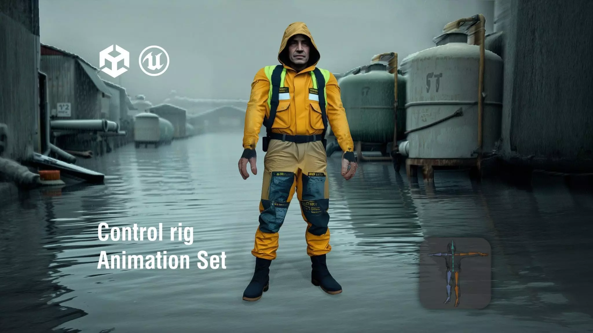 This model depicts a water purifier operator survivor, showcasing detailed waterproof workwear and a realistic environment. Each model has 3 levels of detail with QUAD polygons: