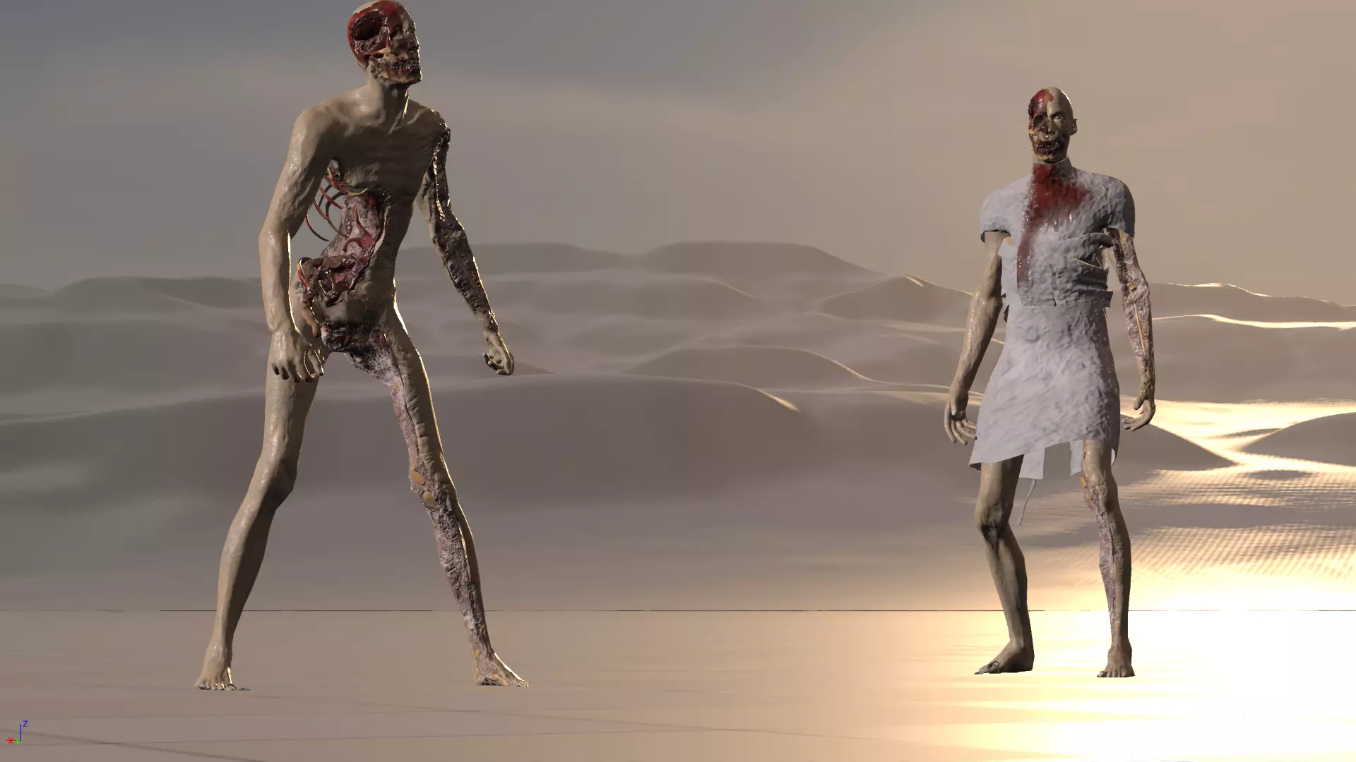 Physics baked for all of my animations and set inside Unreal/Unity as a cloth simulation.Character rigged on epic skeleton Unreal Engine 5 and Humanoid for Unity in separate mesh packages.The model is completely modular, you can remove or add some parts. Unity pack contains 2 mesh sets in 5 prefabs from 3 skins:Zombie1_Full1 - faces 14258 verts 14922 tris 28305Unity Base_Mesh_Zombie1_Full2 - faces 17389 verts 18203 tris 34488Unreal SK_Zombie1_Full2_w_proxy_mesh - faces 18192 verts 19029 tris 36094