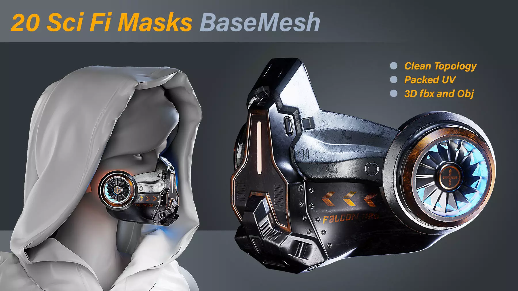 20 Sci Fi Masks Base Mesh Fbx Obj 3D model