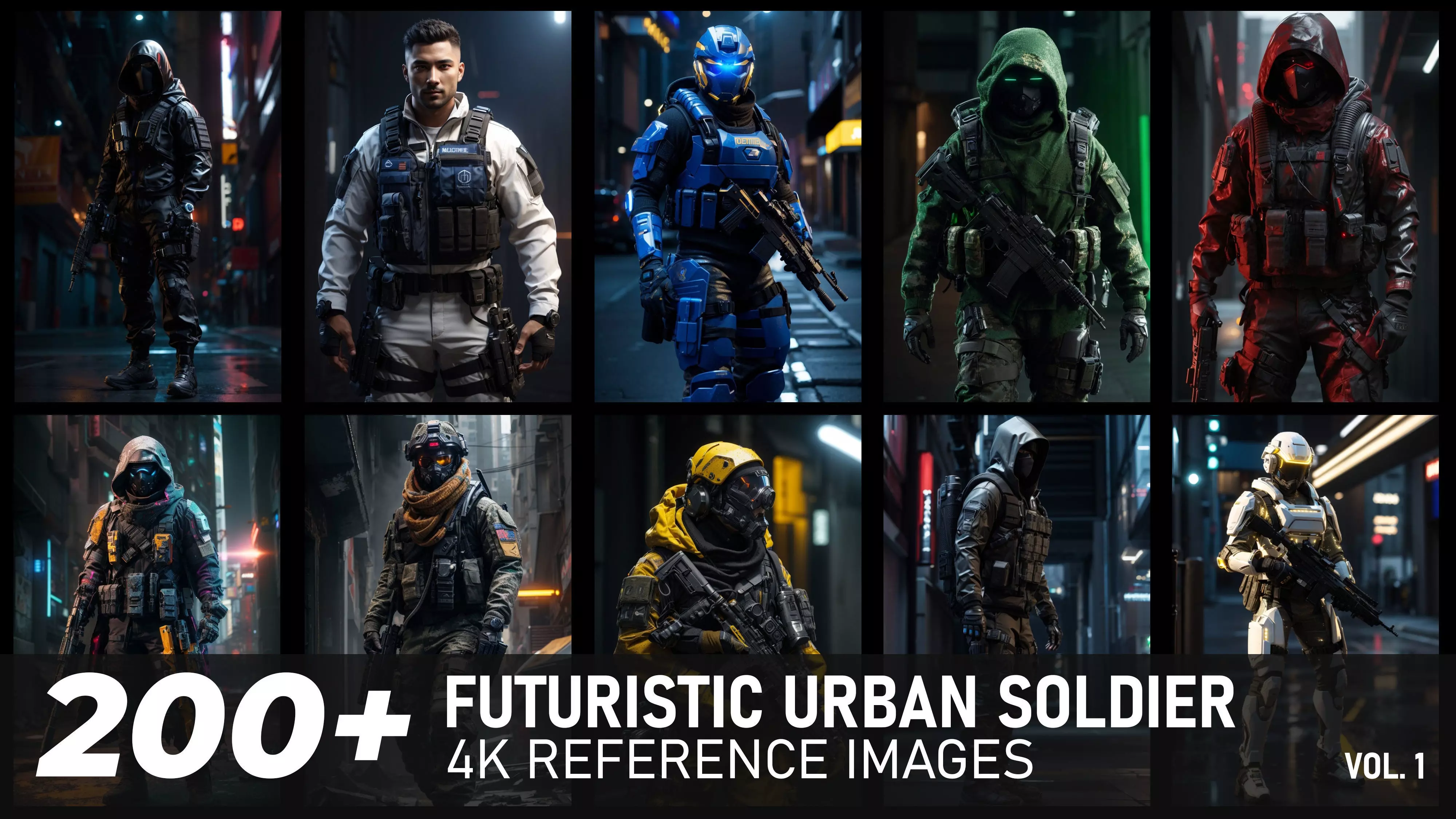 Combat the modern threat with this reference image pack tailored for futuristic urban soldiers. This collection is meticulously curated to provide a wide array of visual references, including advanced weaponry, high-tech armor, and urban combat scenarios.