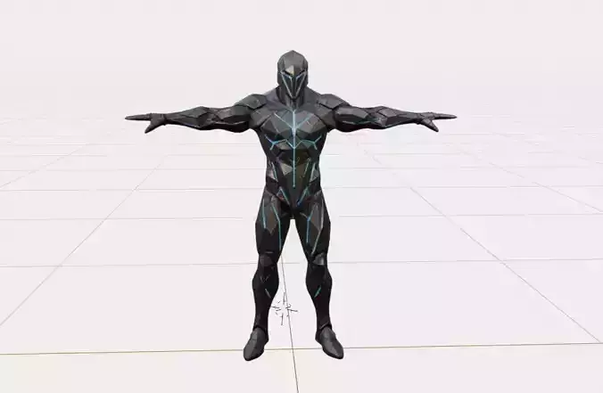 This model features a unique Low-Poly sci-fi design with glowing blue energy lines, giving it a striking futuristic look. Designed in a standard T-Pose, the model is ready for seamless integration into game engines and 3D design software.