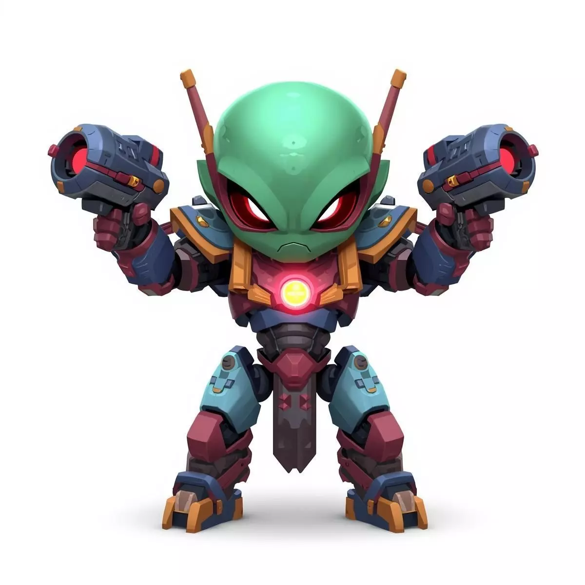 Tags3d model, chibi robot, combat character, stylized 3d, game ready asset, heavy bot, tactical sci-fi, energy cannons, power core, mechanical warrior, 3d mascot, armored bot, tank robot, high-tech character, energy weapon, character design, battle droid, digital sculpture, futuristic soldier, hard surface
