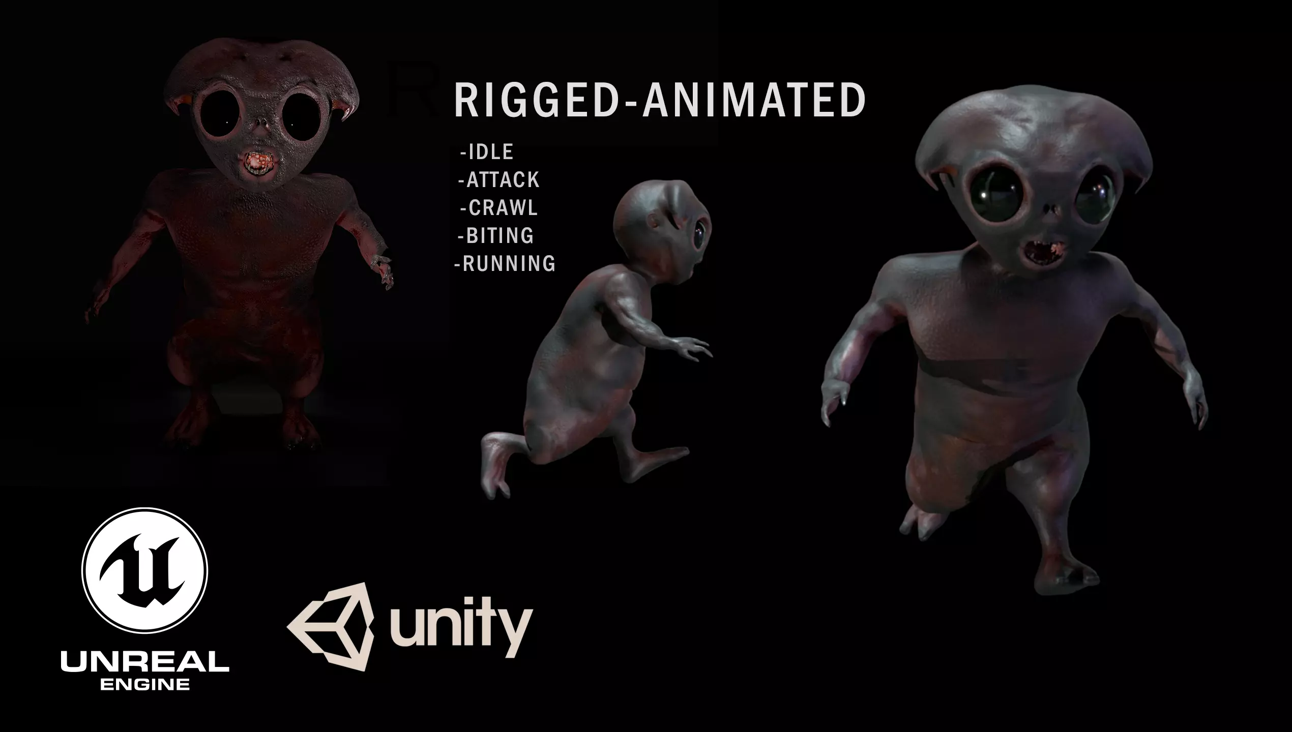 Sci-fi Alien 3D model, ready for any rendering engine or video game engine, ready for Unity and Unreal Engine.Contains PBR textures with 4096x4096 resolution, includes Color, Normal, Roughness, AO, Metallic maps.