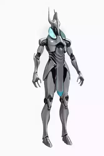 Discover this high-detail sci-fi alien mech robot 3D model, perfect for futuristic games, animations, VR/AR projects, concept art, and cinematic renders. Featuring a sleek metallic exoskeleton with glowing cyan/blue energy accents, insect-like helmet design, articulated limbs, and a cybernetic humanoid structure inspired by advanced extraterrestrial technology.