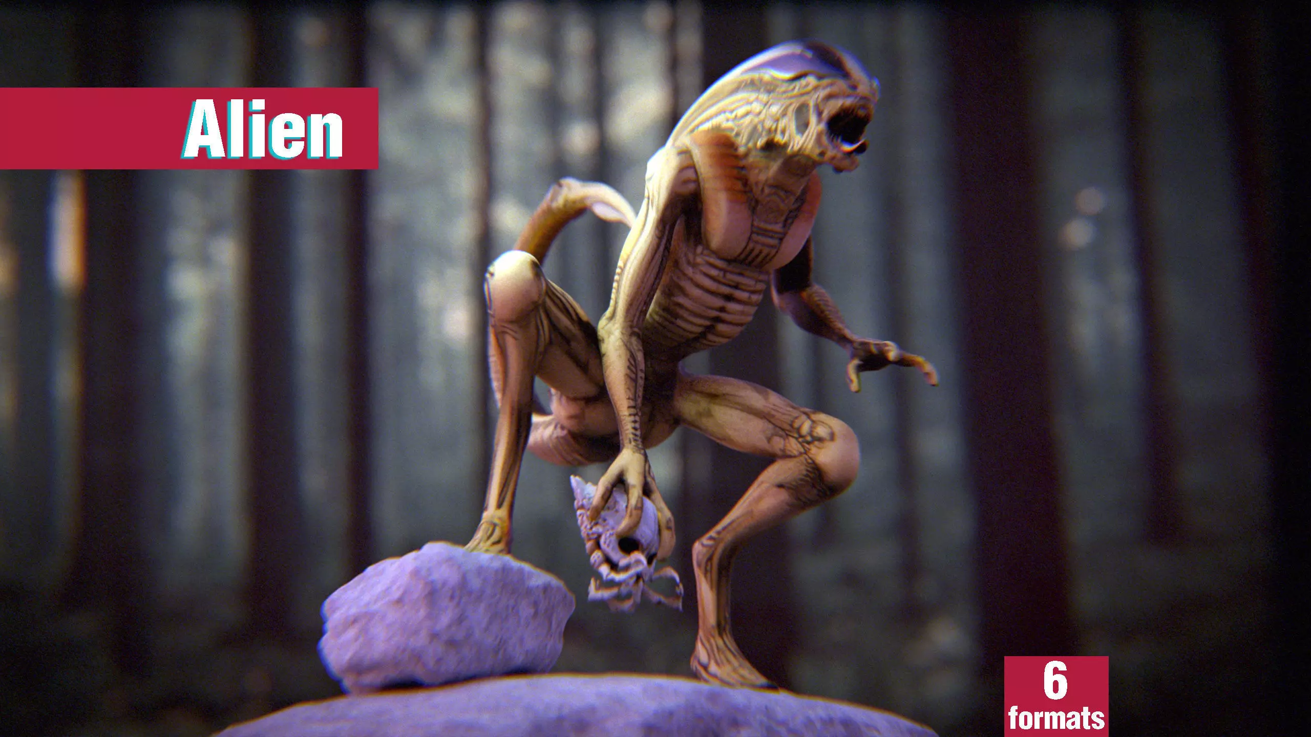 This highly detailed Alien Predator Creature is a stunning 3D model designed for film, games, cinematics, and collectibles. Inspired by biomechanical aesthetics, this alien blends skeletal and organic elements, resulting in a menacing, otherworldly form. Perfect for horror, sci-fi, and dark fantasy projects, the model captures a terrifying essence with a predatory stance, sharp claws, and a biomechanical exoskeleton.