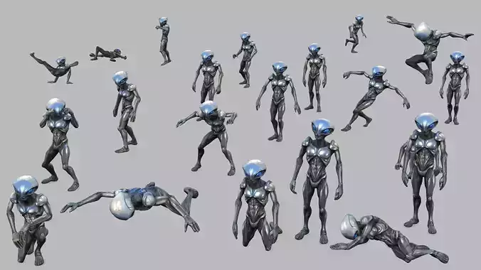 Step into a futuristic world with this highly detailed alien humanoid 3D character, fully prepared for use in games, films, AR/VR experiences, simulations, and sci-fi cinematics. With a sleek biomechanical look and realistic PBR textures, the character comes fully rigged and includes 60 unique animations such as dancing, combat, zombie motions, stunts, and expressive idle poses.