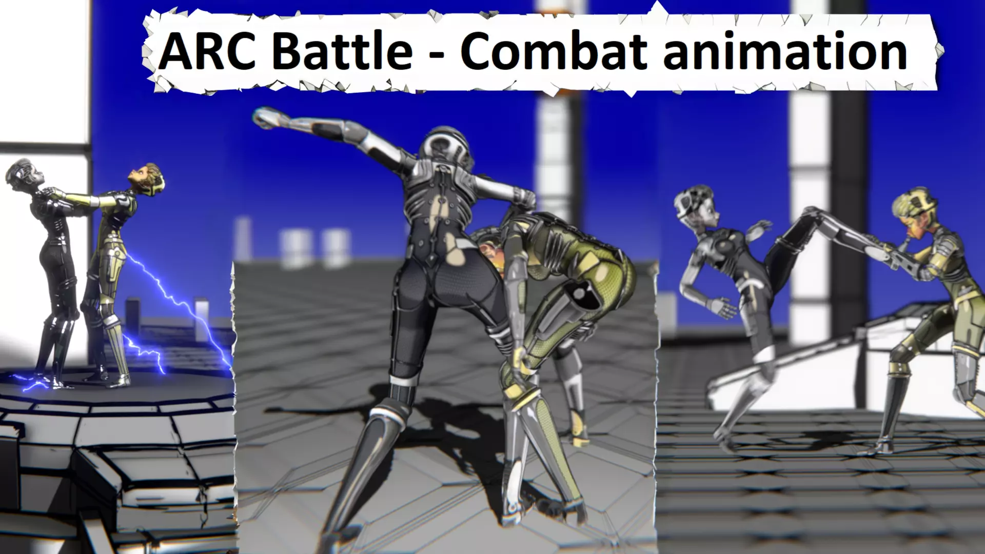 A stylized cyberpunk-inspired combat pack featuring two asymmetric robotic girls (Gold & Gothic variants) with high-tech designs, multiple shader options, and fully rigged combat animations. Perfect for games, cinematics, and stylized renders.