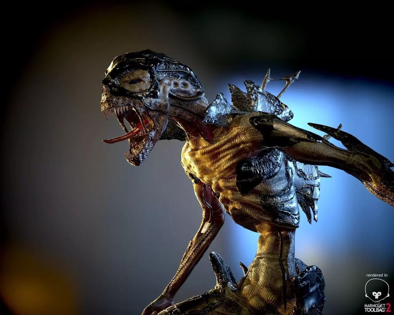 An Alien with a strange type of Armor. Comes with 2K and 4K resolution Maps (Color, Normal, Roughness, Metallic and SSS). Set up for UE4 and Unity PBR Workflow.