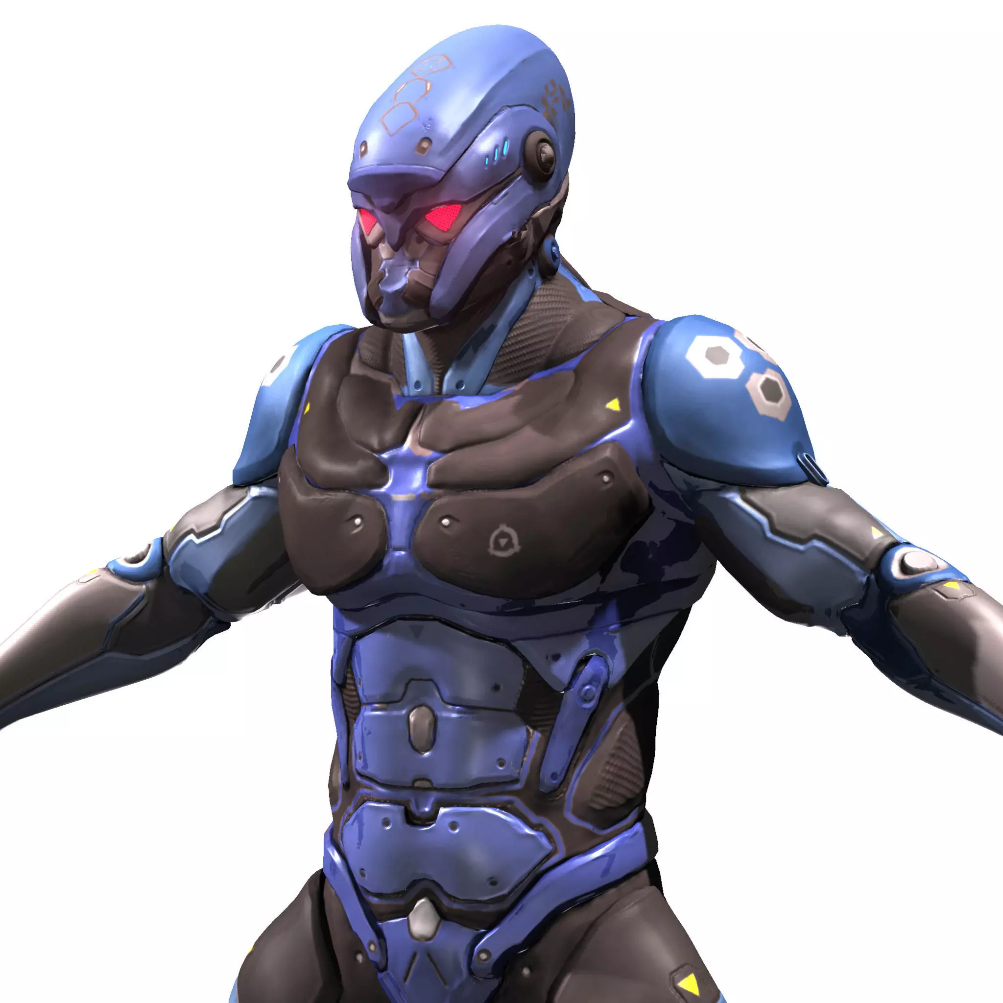 Sci-Fi robotic suit. This character is uv maped and ready to rig. There are two versions of ArthurC, T pose version and the original pose version. Three different diffuse map color variations included.