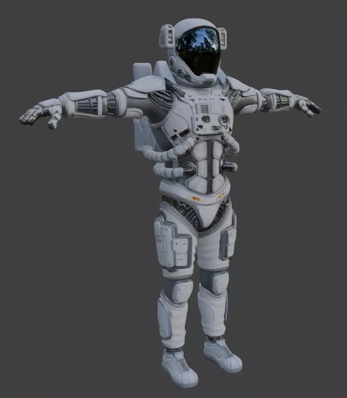 100% quad-based polygon meshNon-overlapping UVsFull PBR texture set (Base Color, Normal, Roughness, Metallic, Height, AO)Realistic details on helmet, backpack (PLSS), gloves, boots, and hosesGame-ready and optimized