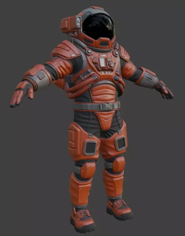 100% quad-based polygon meshNon-overlapping UVsFull PBR texture set (Base Color, Normal, Roughness, Metallic, Height, AO)Realistic details on helmet, backpack (PLSS), gloves, boots, and hosesGame-ready and optimized