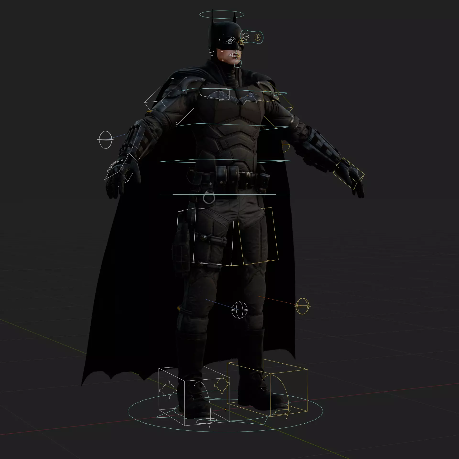 This high-quality 3D model of Batman, based on Robert Pattinson's appearance in The Batman (2022), is fully rigged and optimized for animation, gaming, and rendering. Designed in Blender, the model is also available in FBX and OBJ formats for easy use across multiple workflows.