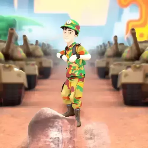 This 3D model represents a cartoon-style soldier character wearing a vibrant camouflage uniform. The model features detailed clothing textures, realistic facial expressions, and dynamic posing options. It is well-suited for use in video games, animations, and interactive simulations, providing an engaging and versatile character depiction.