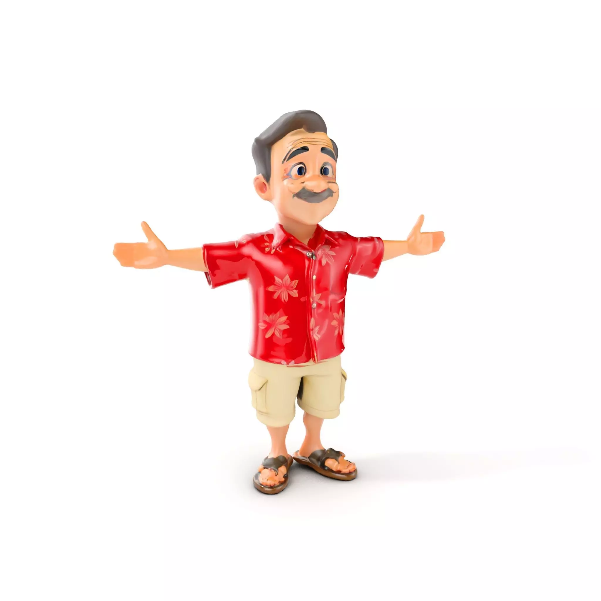 Casual Hawaiian Tourist Character Rigged and Animated Low-poly 3D model