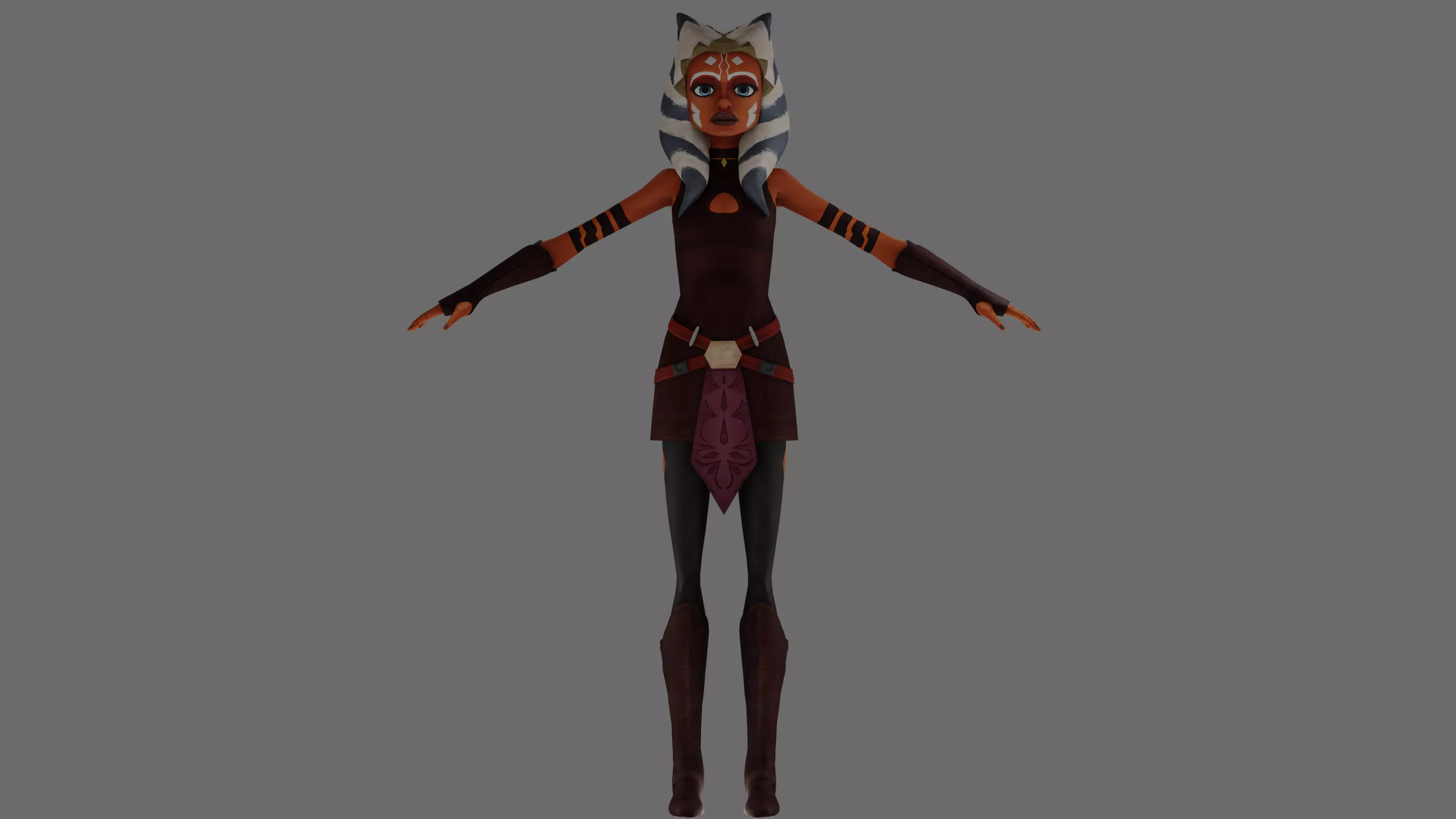 This model includes exact same looking Ahsoka Tano model just like from Clone Wars TV Show!I worked really hard on it till it got the same look as in TCW Seasons 3-5!It has 2k-8k textures!It is also fully rigged!