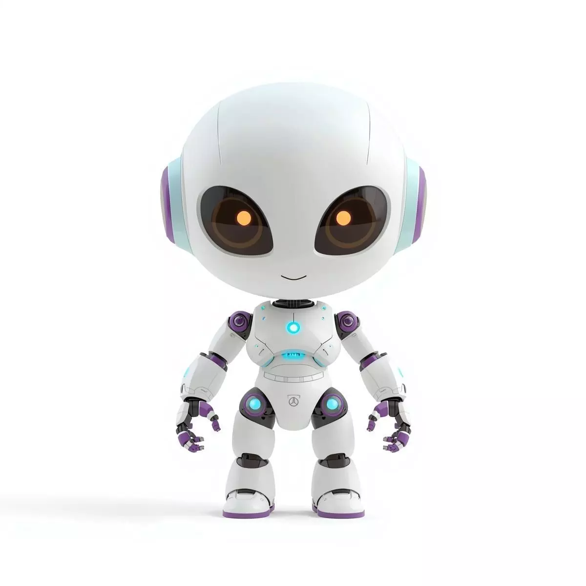Tags3d model, chibi robot, alien character, stylized 3d, game ready asset, friendly robot, kawaii sci-fi, pastel colors, glowing eyes, mechanical toy, 3d mascot, cute bot, lavender and mint, high-tech character, t-pose, character design, social simulation, digital sculpture, futuristic companion, smooth geometry