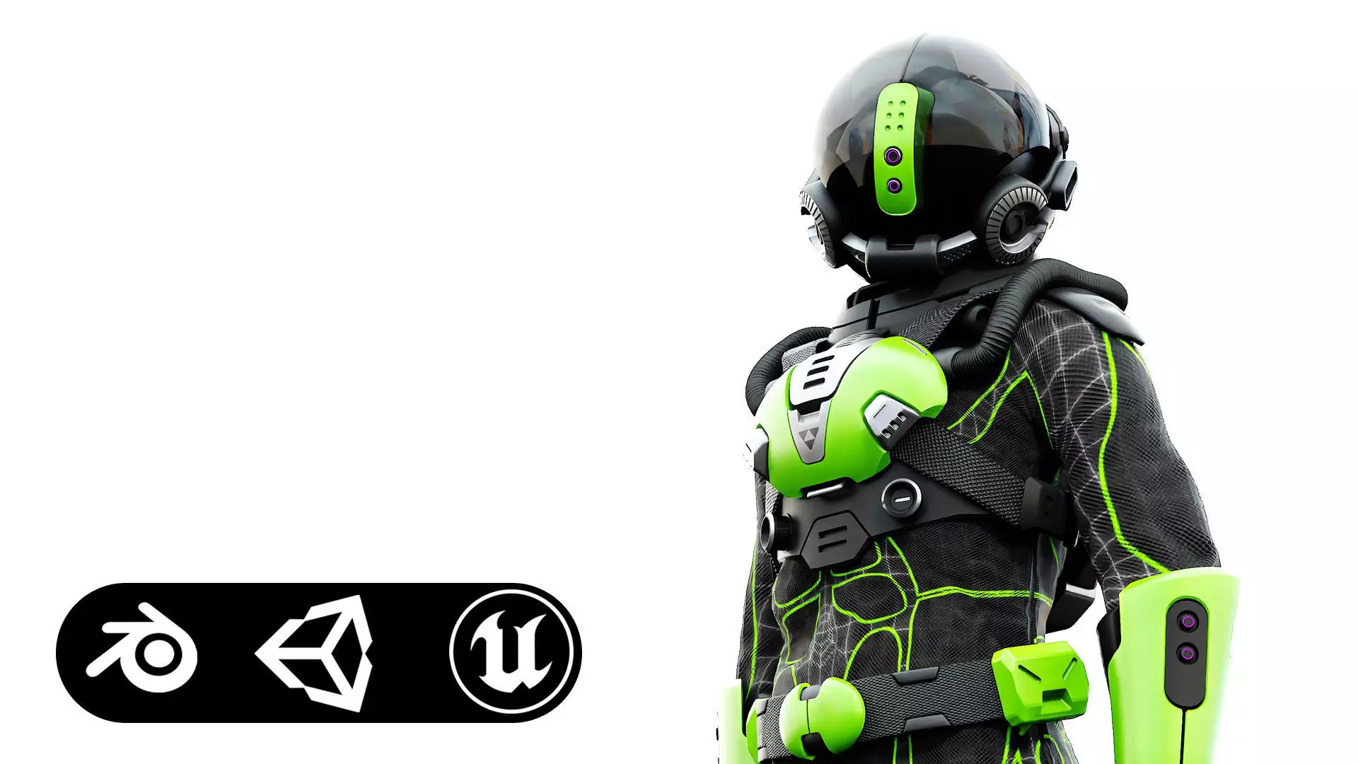 CYBER ASTRONAUT-C made in Blender 3.0 Light setup in Cycles. Ready for your Personal Websites, Movies, TV,advertising, etc.