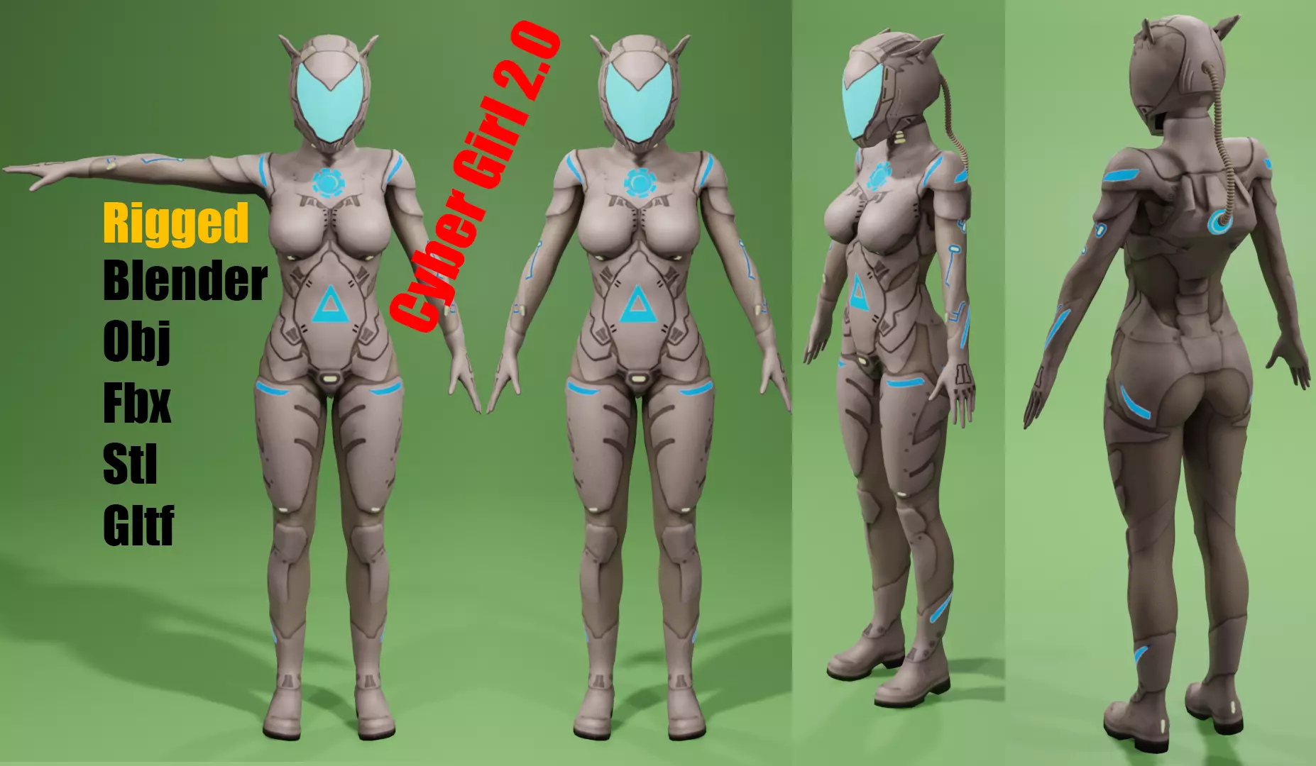 Cyber Girl 2.0 is a 3d Game ready character that can be uesd for games. Every thing is good there is no issues i made this ok and if some one find problem with on this he contect me on cg. I am made 3d models on blender.