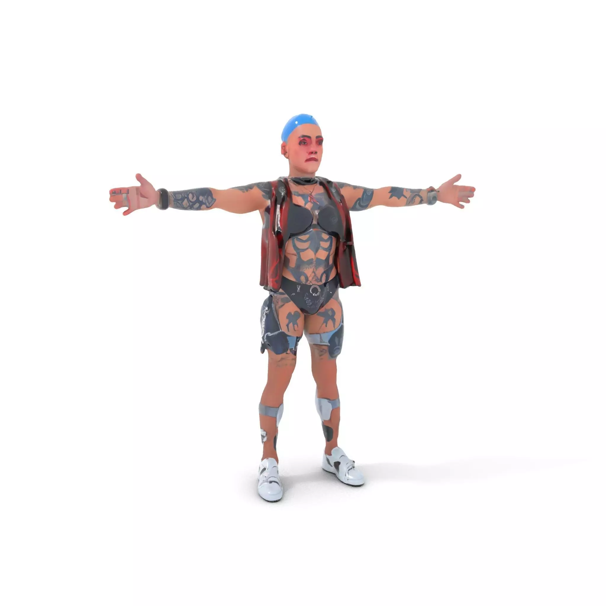 This cyberpunk tattooed character model features futuristic elements and intricate tattoos, making it perfect for sci-fi, game environments, and virtual reality scenes. Each model has 3 levels of detail: low-poly(1000 triangles for mobile), middle-poly(10 000 triangles for environment), and high-poly(100 000 triangles), which allows for the use of this model in production rendering(such as 3ds max, Maya,Cinema4d, Blender, Vray/Corona/Cycles and all other), game engines(Unity and Unreal compatible), and interactive presentations, providing a choice of detail based on the LOD System principle. Ideal for use in cyberpunk cityscapes, character animation, and futuristic scenarios. The model's textures are PBR, Diffuse, NormalMap, and reflection/roughness/metallic, which are suitable for any modern rendering engine. All models accurately unwrapped and have no overlapping UV. Textures are 4096*4096 in size. If you like this model, please leave a like and comment.