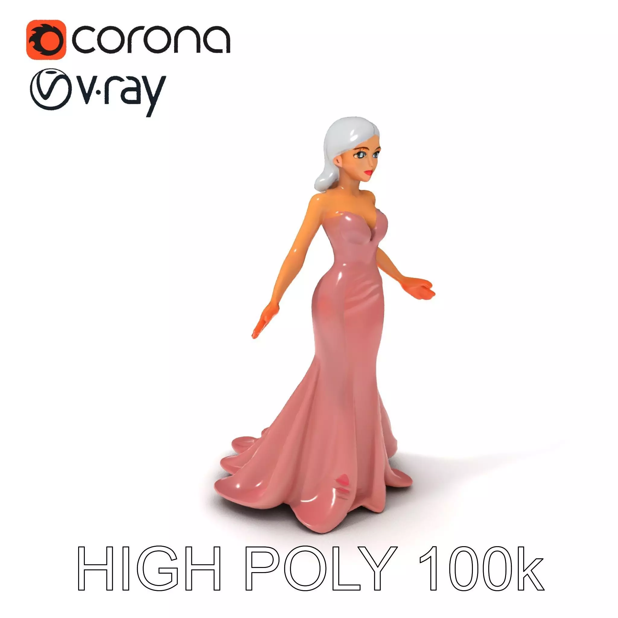 Elegant Evening Gown D Character Model with Silver Hair Low-poly 3D model