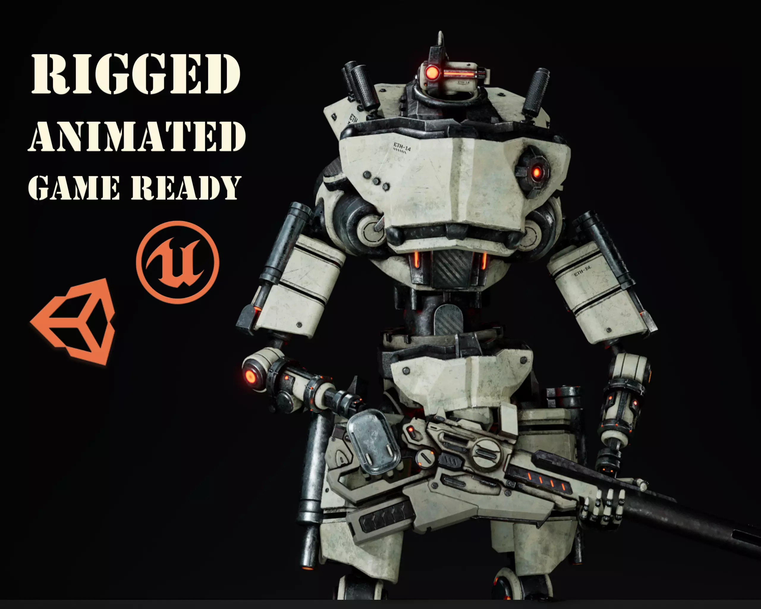 Etasphera14 humanoid robot with gun Low-poly 3D model