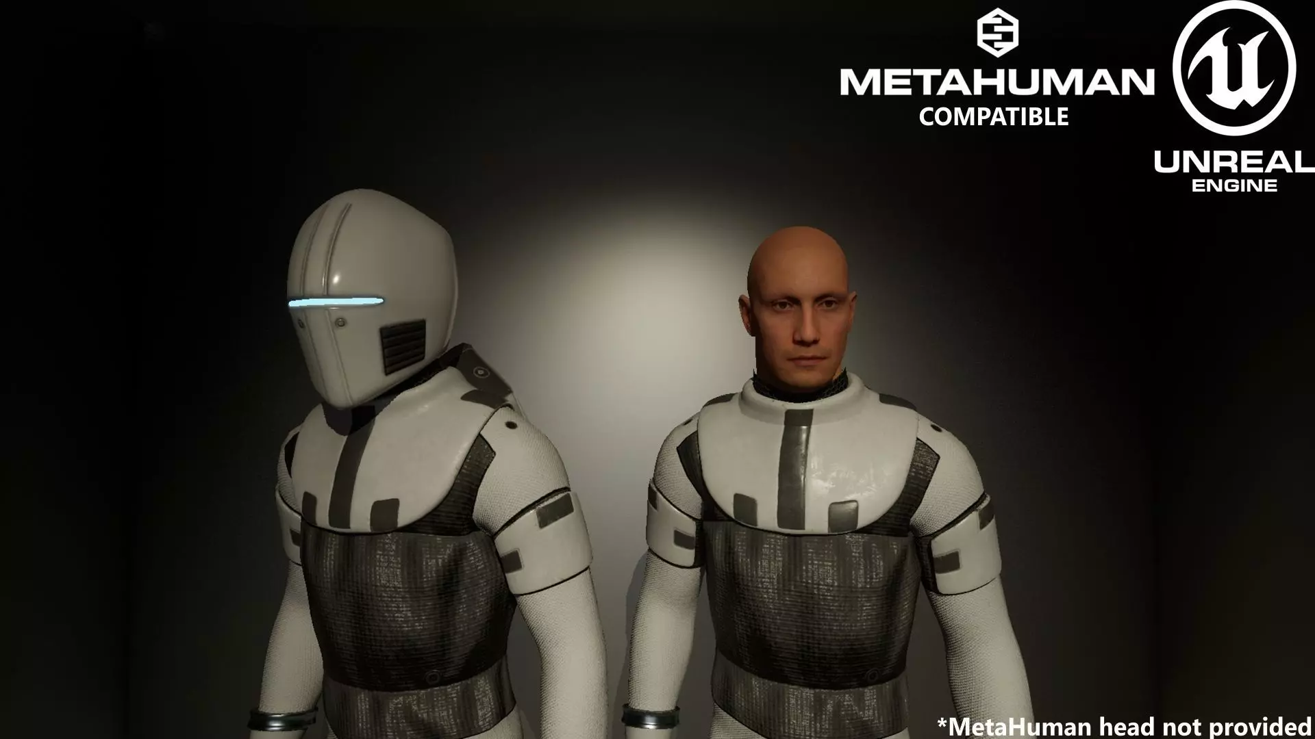 The spacesuit comes all-in-one and as modular parts. Created using the medium male body as reference. The spacesuit and parts are all using the metahuman skeleton. All parts have 4 LODs created in Unreal. MetaHuman body and head are not provided in this asset. Multiple materials to change colors of each piece.