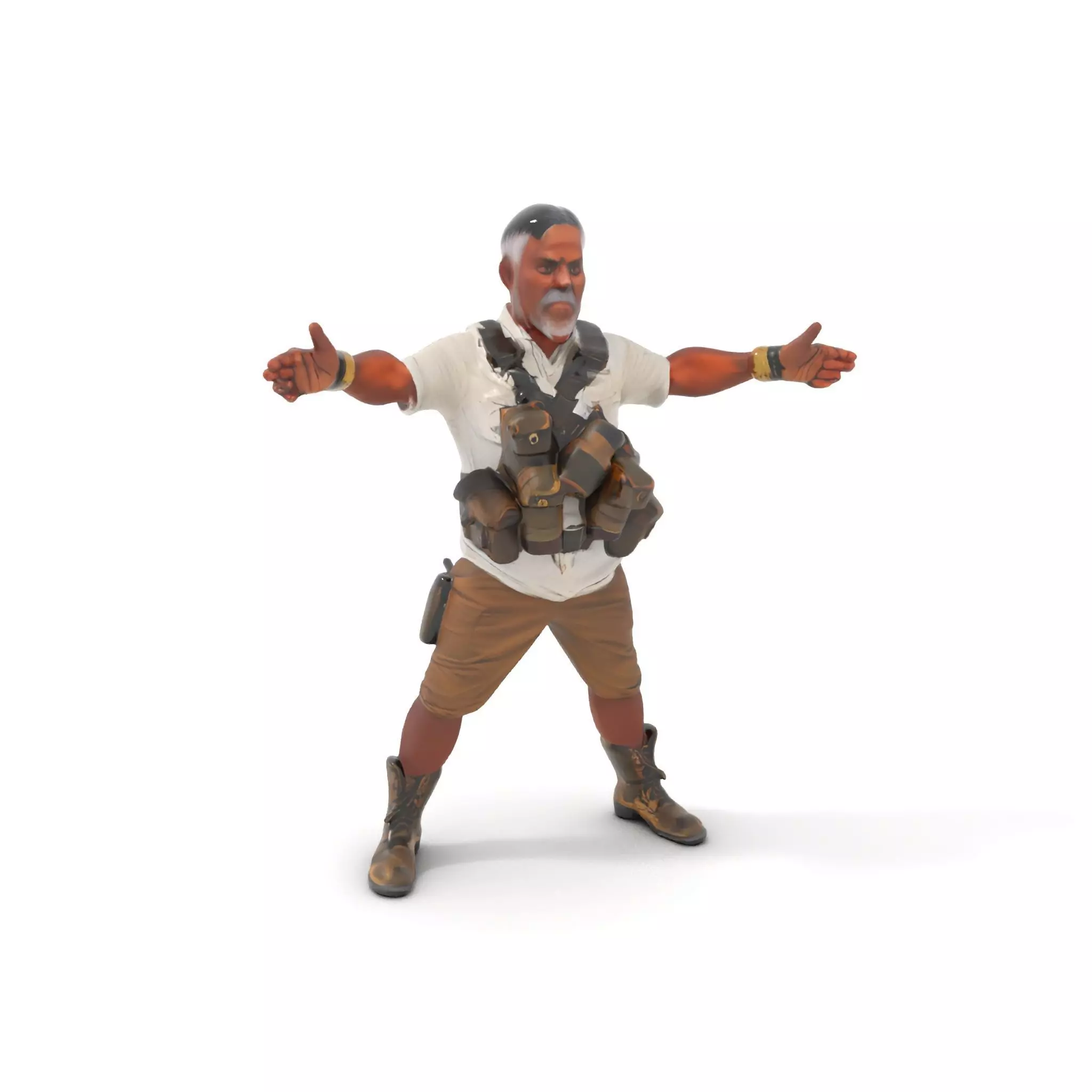 The Explorer Adventurer model pack offers a realistic 3D model portraying an experienced explorer equipped with tactical gear. Perfect for adventure games, virtual reality experiences, and films. Each model has 3 levels of detail: low-poly (1000 triangles for mobile), middle-poly (10,000 triangles for environment), and high-poly (100,000 triangles), which allows for the use of this model in production rendering (such as 3ds Max, Maya, Cinema4D, Blender, Vray/Corona/Cycles and all others), game engines (Unity and Unreal compatible), and interactive presentations, providing a choice of detail based on the LOD System principle.