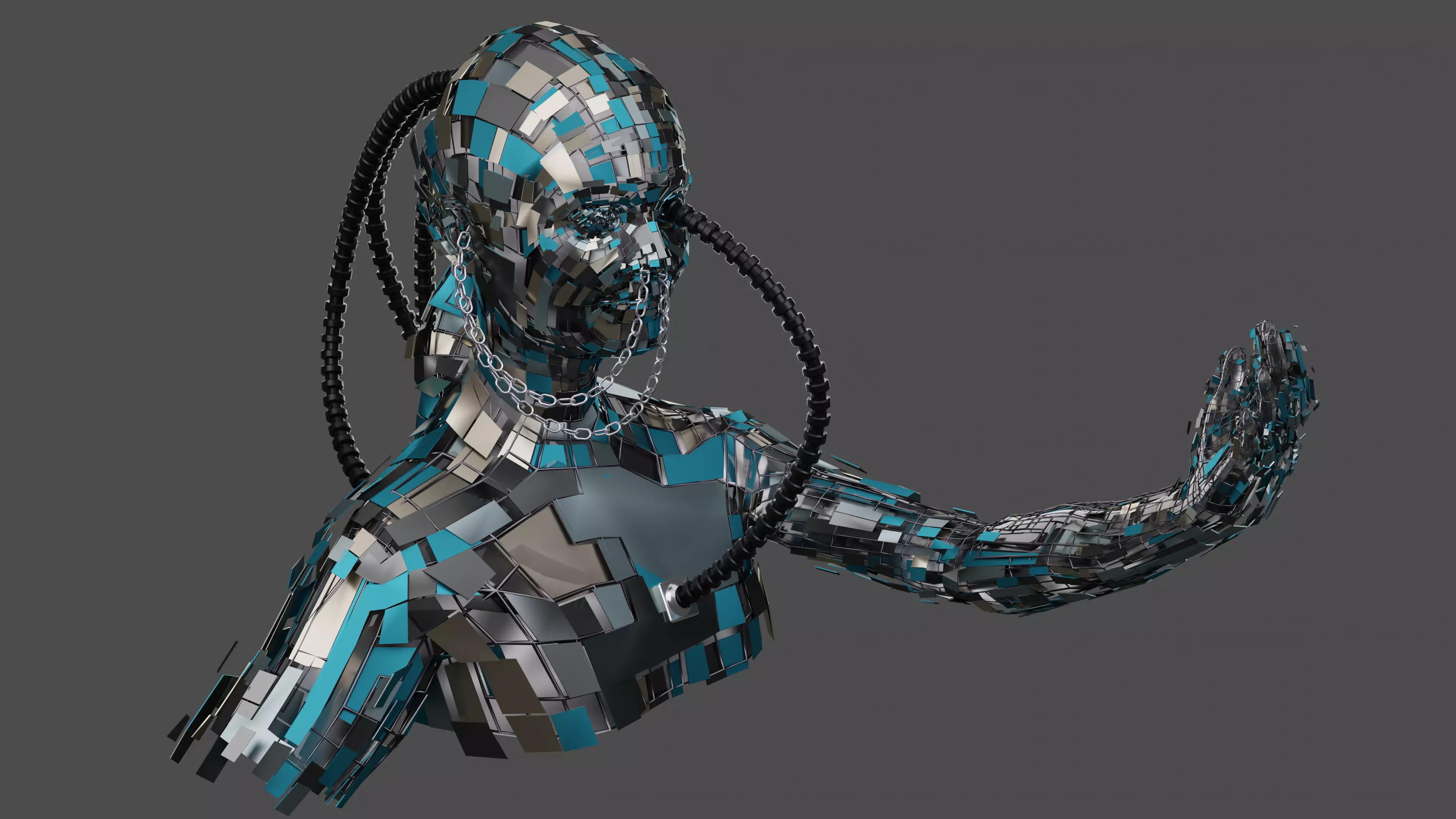 I created this female cyborg character 'upper bust section' in Blender 2.91. I originally started using a free base character mesh as a reference, then practiced creating my own human character just to see if I could do it. Most of my 3D models and artwork focus more on the stylistic side and less functional. I am a big fan of the abstract style of 3D art and I wanted to create something in a cyberpunk style. I have exported the character in .fbx, .obj, and .stl formats as well as uploaded the original .blend file for anyone who might want to easiy edit this model as desired. I hope that the different reference screenshots of the model within Blender are able to show all aspects of viewing angles. I used color.adobe.com for the simple generic color pallet. I searched for 'cyborg' in the explore section and picked the colors you see in the screenshots.