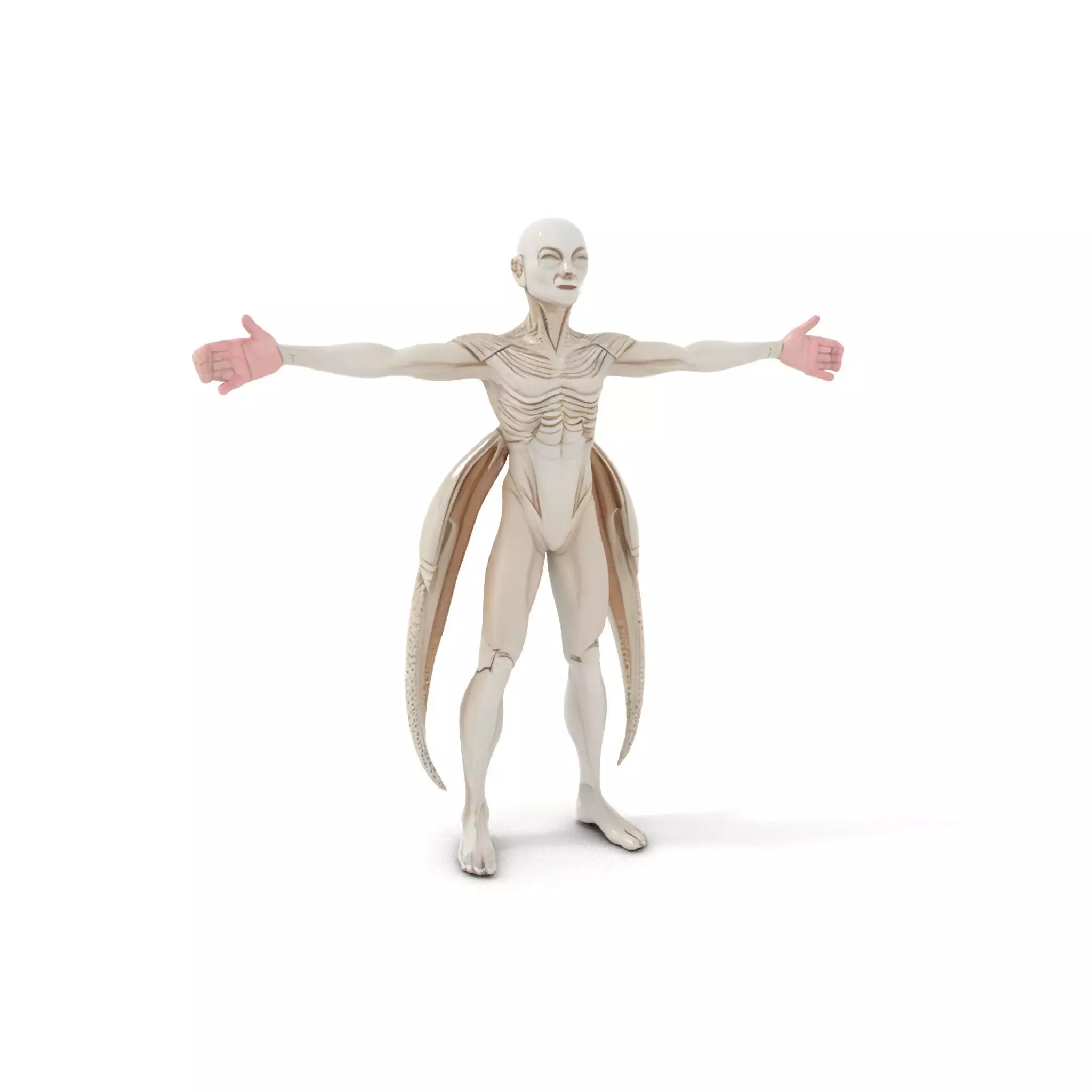 This model represents an intricately designed futuristic alien warrior, featuring sleek, elongated limbs and a biomechanical aesthetic. Each model has 3 levels of detail: low-poly (1000 triangles for mobile), middle-poly (10,000 triangles for environment), and high-poly (100,000 triangles), which allows for the use of this model in production rendering (such as 3ds Max, Maya, Cinema 4D, Blender, Vray/Corona/Cycles, and all others), game engines (Unity and Unreal compatible), and interactive presentations, providing a choice of detail based on the LOD System principle. Perfect for science fiction settings, this model can enhance visual storytelling in games, animations, and virtual reality experiences. The model's textures are PBR, Diffuse, NormalMap, and reflection/roughness/metallic, which are suitable for any modern rendering engine. All models accurately unwrapped and have no overlapping UVs. All textures are 4096*4096 in size. If you like this model, please leave a like and comment!
