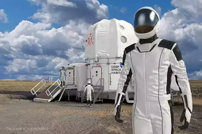 Futuristic Astronaut Space Suit 3d model fully rigged with bones and skin system in Cinema 4D R14.You can easily position it the way you need or animate.See the renders to get an idea of how animation works.