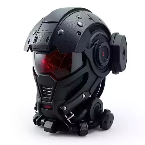 This highly detailed 3D model represents a futuristic combat helmet, ideal for a wide array of digital projects. Designed with a striking sci-fi aesthetic, it features a rugged, textured surface, intricate mechanical components, and a cracked, glowing red visor that hints at advanced technology or battle damage. The model is meticulously crafted to ensure clean topology and efficient polygon distribution, making it suitable for both high-fidelity cinematic renders and real-time applications such as video games, augmented reality (AR), and virtual reality (VR) experiences. It can serve as a central prop, character headwear, or an imposing element in digital art scenes. The model is fully UV unwrapped with PBR (Physically Based Rendering) ready textures, ensuring realistic material representation across various lighting conditions. It's provided in multiple industry-standard file formats including GLB, OBJ, STL, ABC, DAE, FBX, USD, and PLY, ensuring broad compatibility with most 3D software and game engines. Whether you're creating a dystopian game, an epic sci-fi animation, or a detailed architectural visualization with a futuristic twist, this helmet offers exceptional quality and versatility.