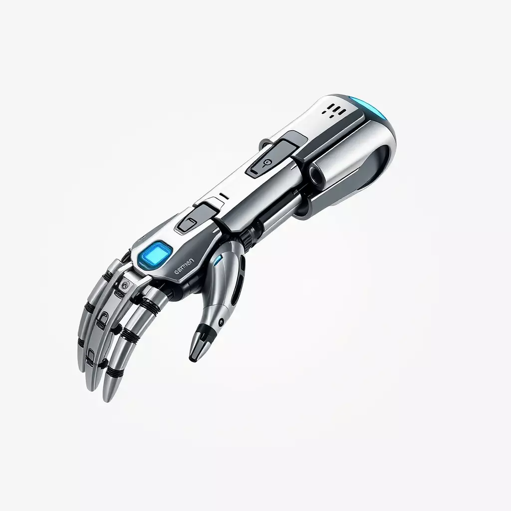 This is a high-quality 3D model of a futuristic robotic prosthetic arm, meticulously designed with a sleek, modern aesthetic. The model features intricate mechanical details, metallic finishes, and subtle glowing blue accents, giving it a sophisticated and advanced appearance. It is an excellent asset for enhancing sci-fi themed projects, offering a compelling visual element for characters or environments. This versatile model can be seamlessly integrated into various applications, including cutting-edge game development for player characters or NPCs, immersive augmented reality (AR) and virtual reality (VR) experiences, and high-fidelity film and animation productions. Its clean topology ensures smooth performance in real-time applications while also being suitable for stunning static renderings and detailed concept art. The model is fully UV unwrapped and prepared with PBR textures to deliver realistic material properties, reflecting light accurately in diverse lighting conditions. Furthermore, it is structured for easy subdivision, allowing for even higher detail if required. It supports a wide range of industry-standard file formats such as GLB, OBJ, FBX, USD, DAE, ABC, STL, and PLY, making it compatible with most 3D software and engines.
