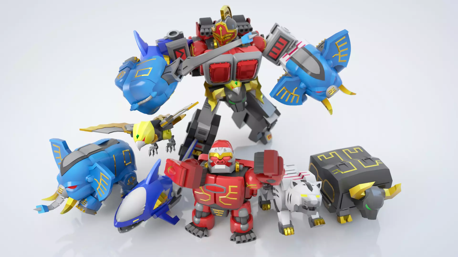Each Zord transforms and combines to form the mighty GaoKnight in an animated sequence.Stylized in a low-poly aesthetic, this piece is a tribute to fans of classic sentai mechs.Contains an extra file with the 6 Power Animals Crystals.Has Blender, Maya, C4D, FBX and OBJ files so you don't have problems opening them.
