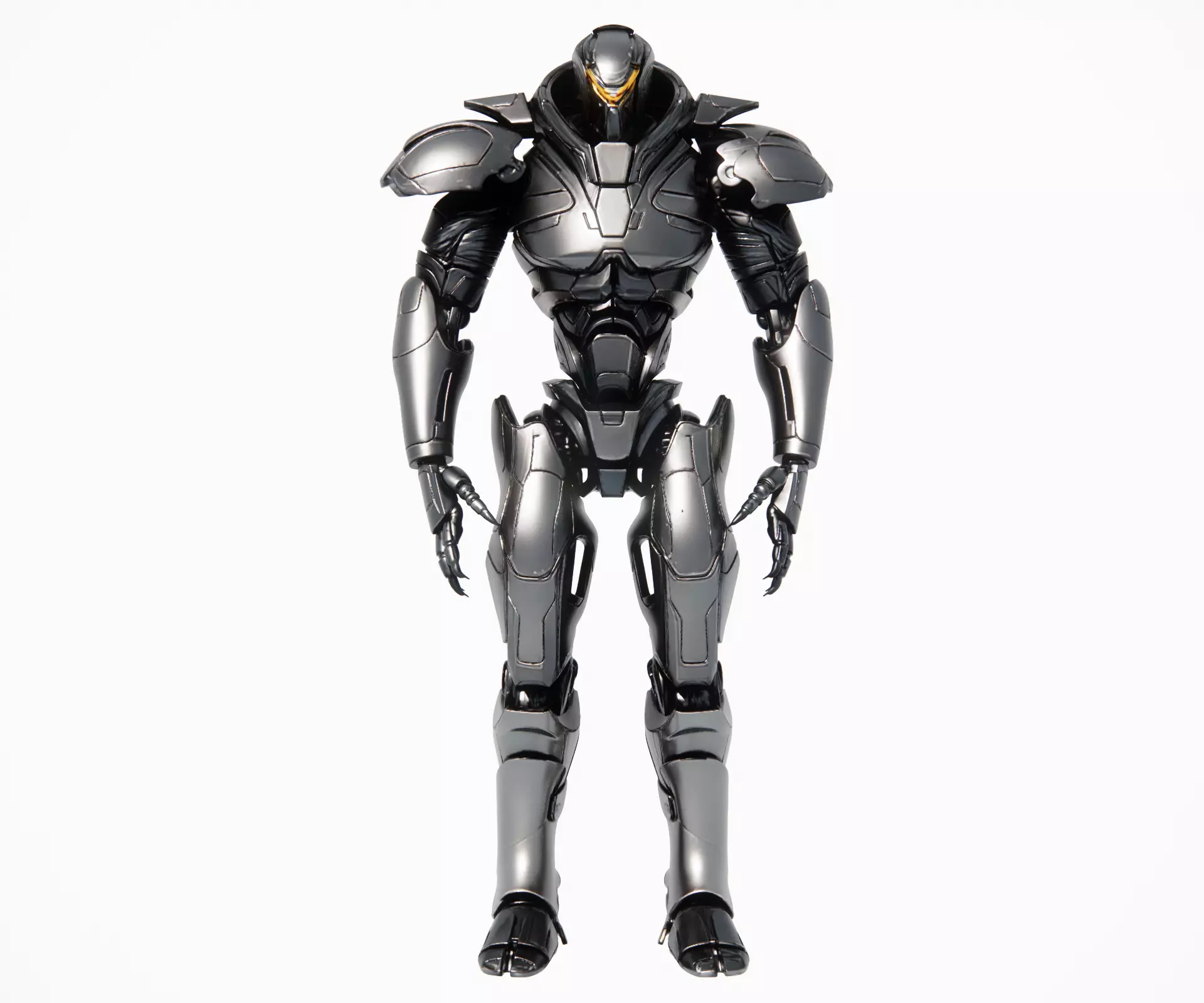 This is a Gunmetal Black Futuristic Combat Mech, a high-detail 3D asset optimized for animation production, digital art creation, high-end collectible figure design, and sci-fi themed brand visual content development. This imposing futuristic battle mech features a premium matte gunmetal metallic finish, precision-engineered segmented armor plating, streamlined heavy-duty shoulder armor, a fully enclosed helmet with striking gold accent details, and sharp claw-style mechanical hands. Its powerful, intimidating silhouette balances intricate mechanical detailing with a sleek, aggressive futuristic design, making it ideal for sci-fi digital projects, premium collectible design, and high-quality character art creation.