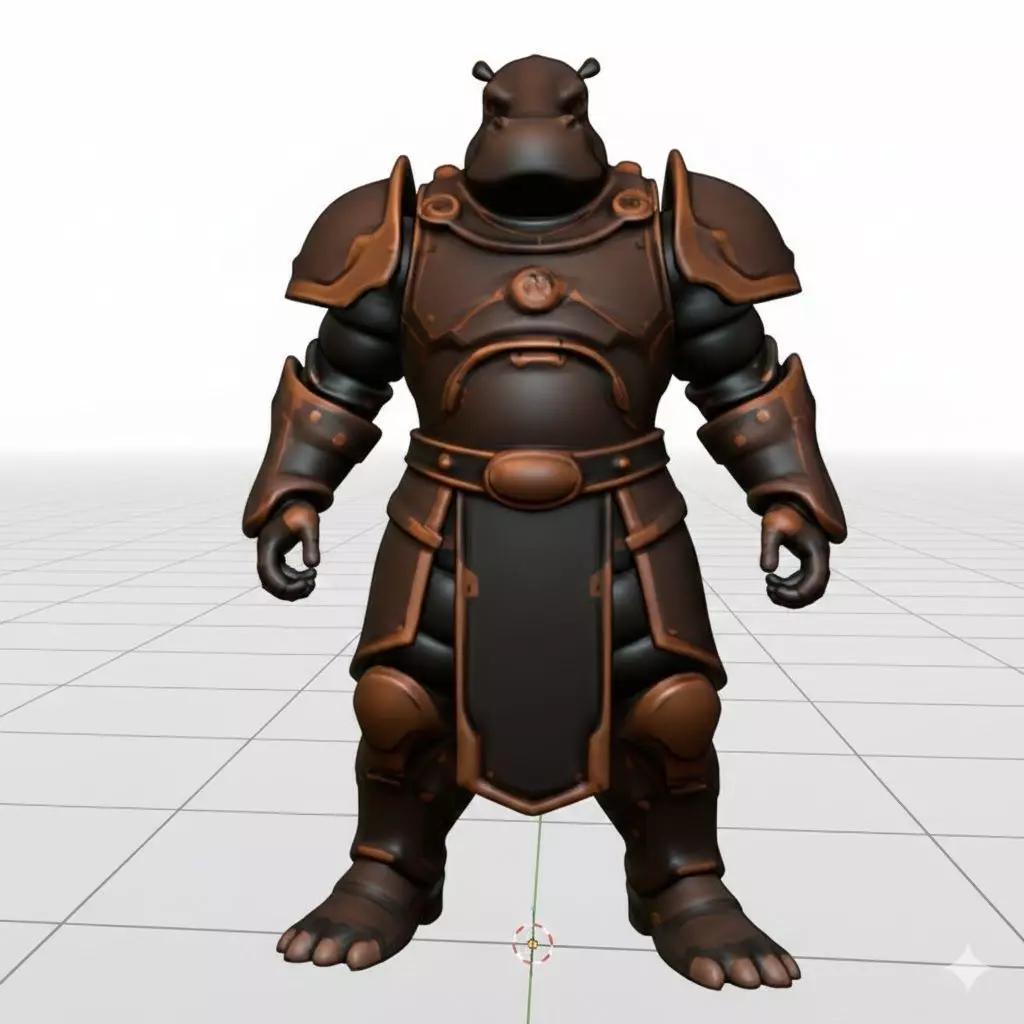 Professional Stylized Hippo Warrior Character Elevate your project with this high-quality, stylized heavy-armored Hippo Warrior. Designed with a focus on powerful silhouettes and clean topology, this model is perfect for fantasy RPGs, strategy games, or as a base for high-end collectibles.