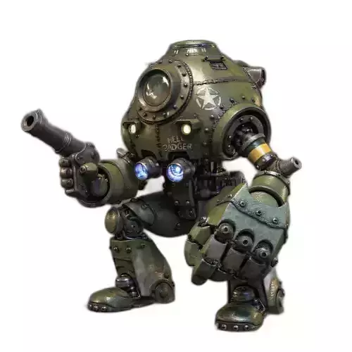 This is a high-quality military sci-fi mech robot 3D model designed with a heavy armored structure and detailed mechanical components. The model features reinforced metal plating, exposed bolts and rivets, industrial joints, and weaponized arms, giving it a powerful and battle-ready appearance suitable for futuristic combat scenarios.
