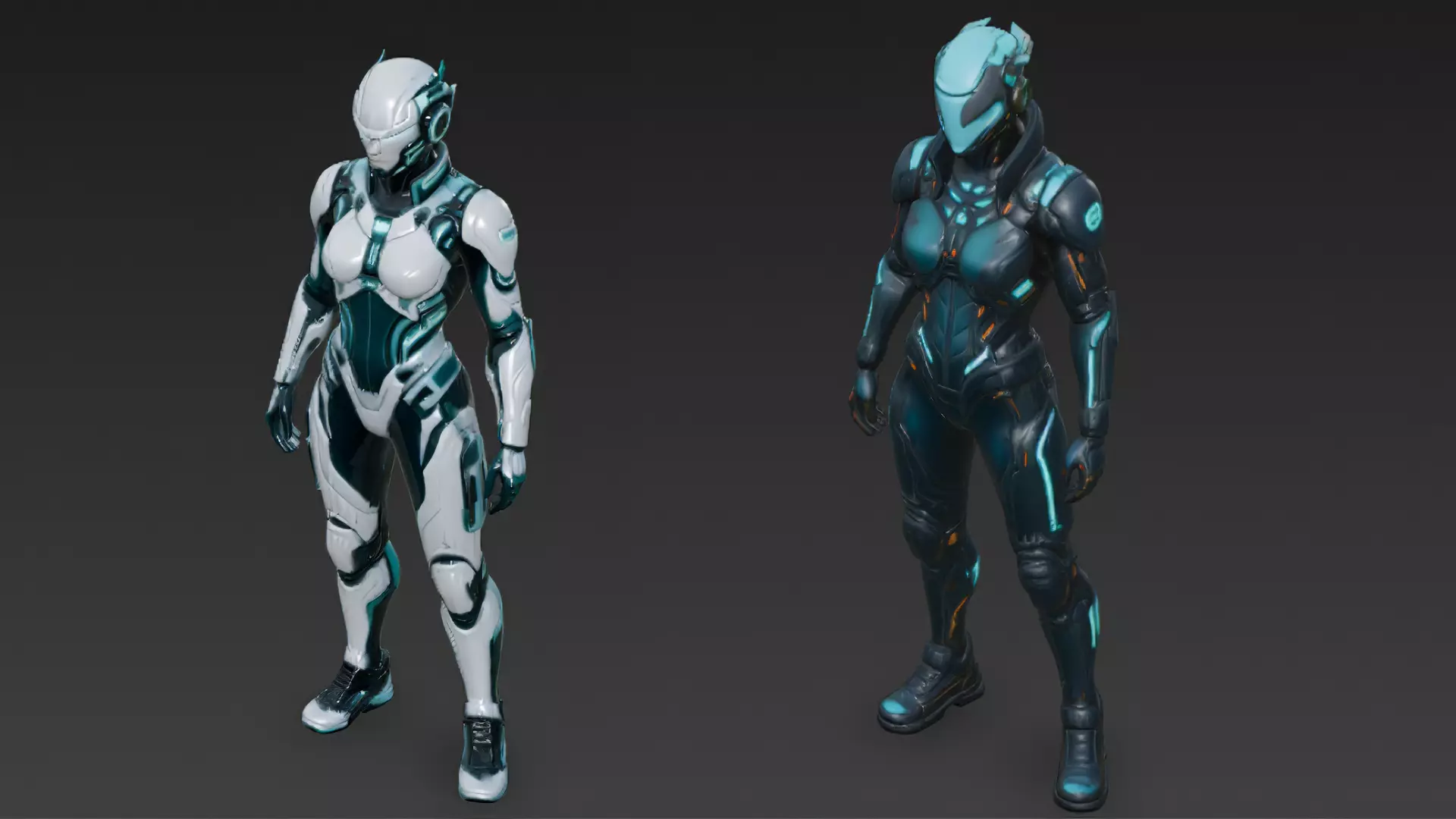 A premium bundle of two fully rigged high-tech bionic androids, perfect for futuristic games, cinematic animation, and sci-fi storytelling.