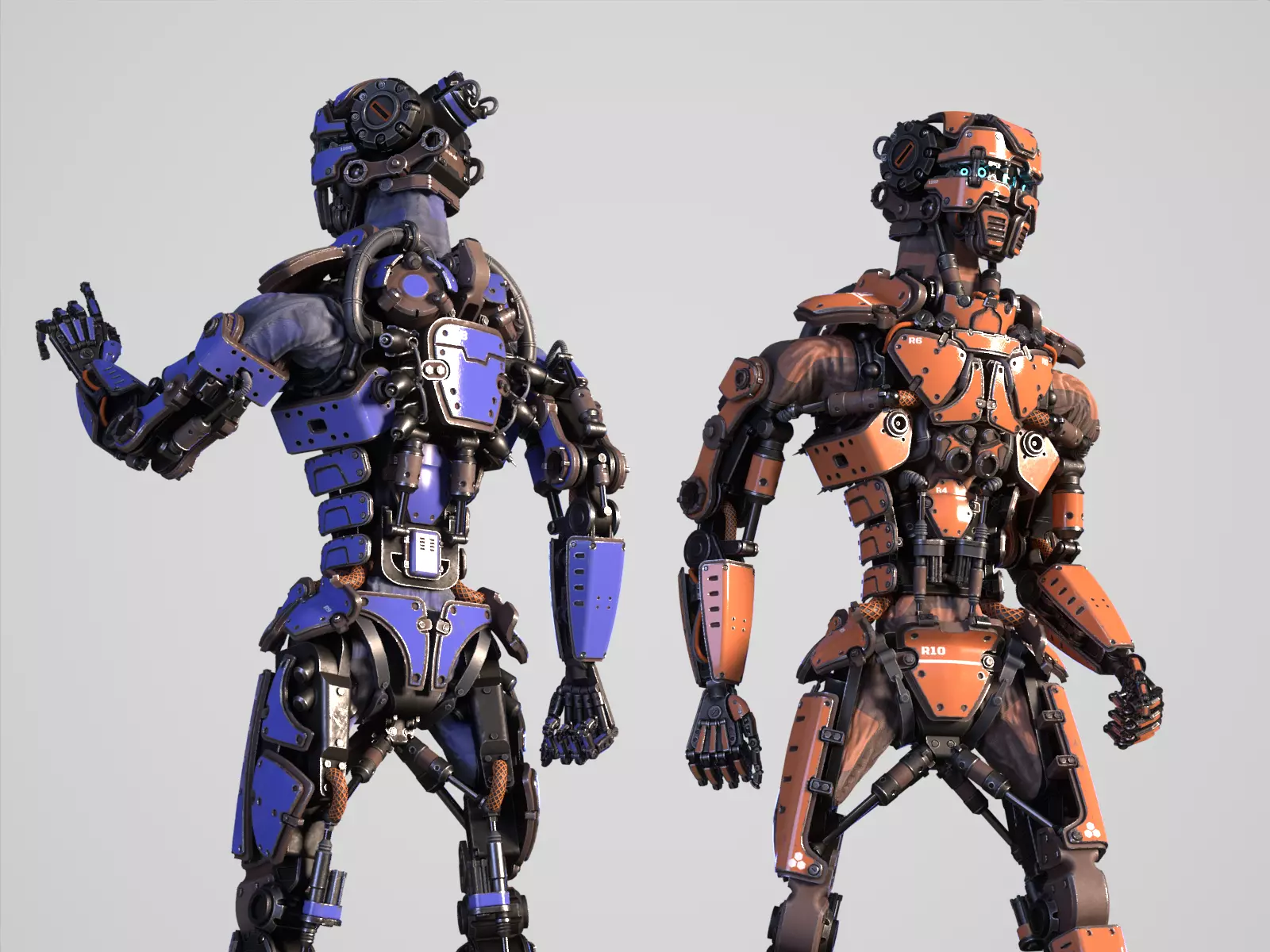 High-detailed highpoly model of a heavy-armored futuristic robot with 2 color options. Can be used in cinematic animations with close-ups and in commercial projects (no resale!).