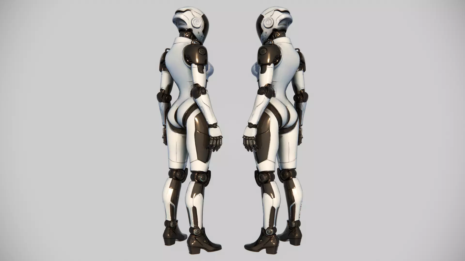 This cutting-edge female humanoid robot 3D model features a polished white-and-black cybernetic design, blending sleek, futuristic aesthetics with functional bipedal articulation. Engineered with high-resolution surface details (including realistic joint mechanics, glossy metallic accents, and anatomically inspired proportions), it’s optimized for use in gaming, animation, concept art, and product visualization. The model includes clean topology, UV-unwrapped textures, and rig-ready joints for seamless posing/animation—ideal for creators seeking a versatile, professional-grade cybernetic character.