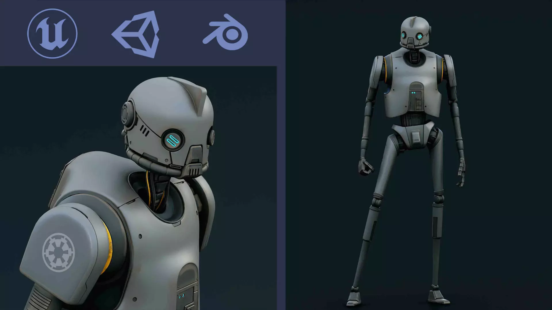 IMPERIAL DROID-02 made in Blender 3.0 Light setup in Cycles. Ready for your Personal Websites, Movies, TV,advertising, etc.