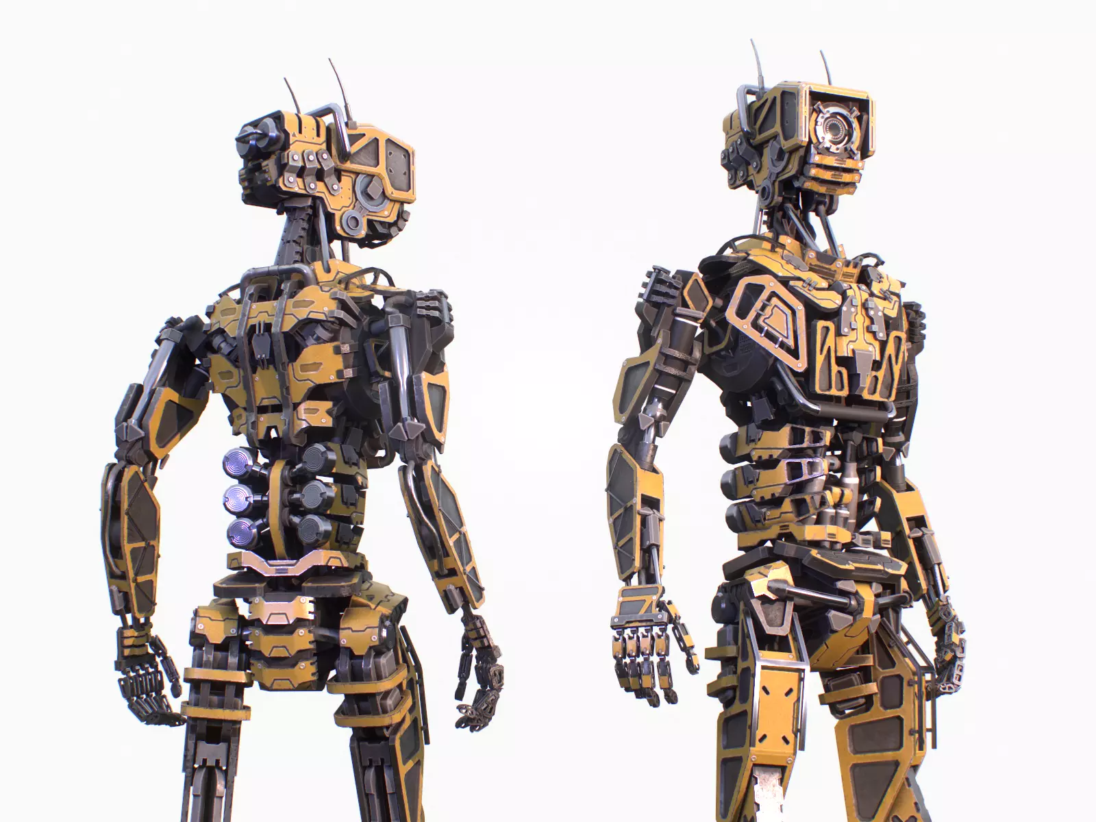 Low-poly textured and rigged model for games/filmsFuturistic industrial robot for Unity/Unreal Engine games or movies in sci-fi setting.